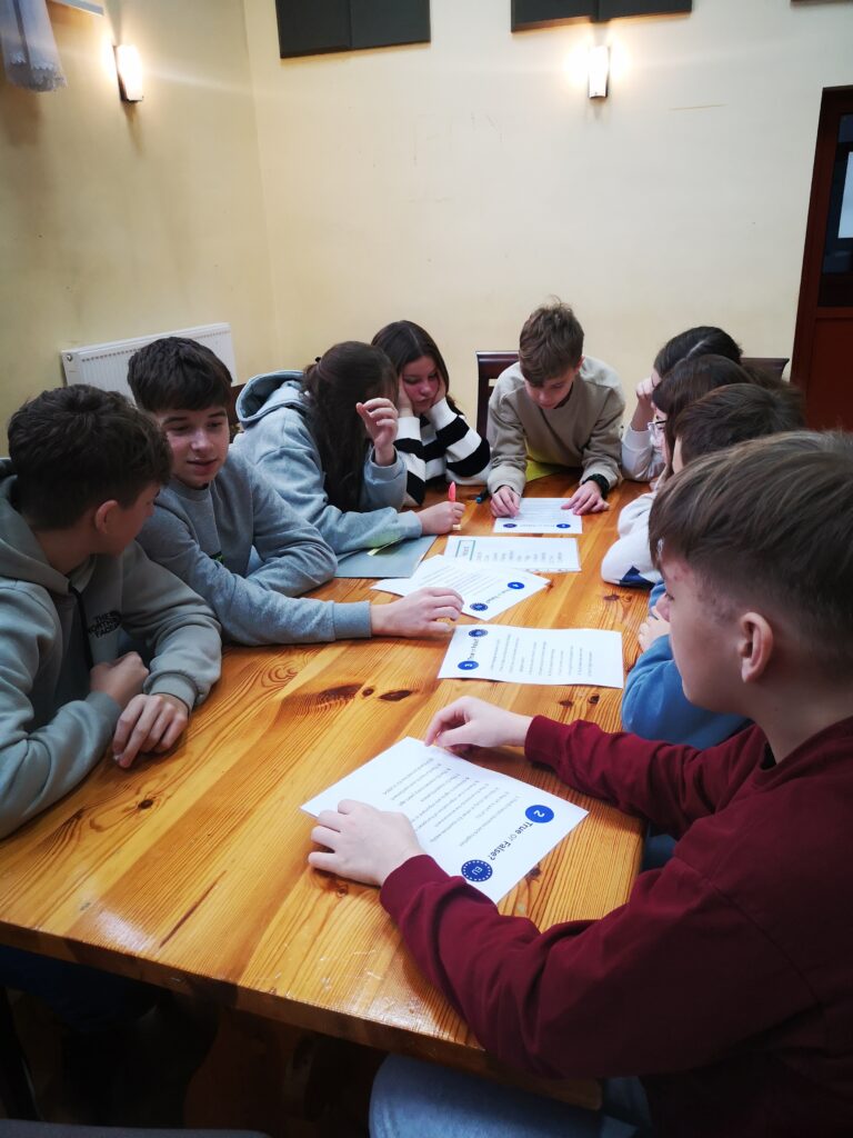 - Zadania z języka angielskiego – Młodzież zmierzyła się również z zestawem zadań językowych, które rozwijały słownictwo i umiejętność komunikacji w języku angielskim. Ćwiczenia były zróżnicowane i dostosowane do możliwości uczestników.